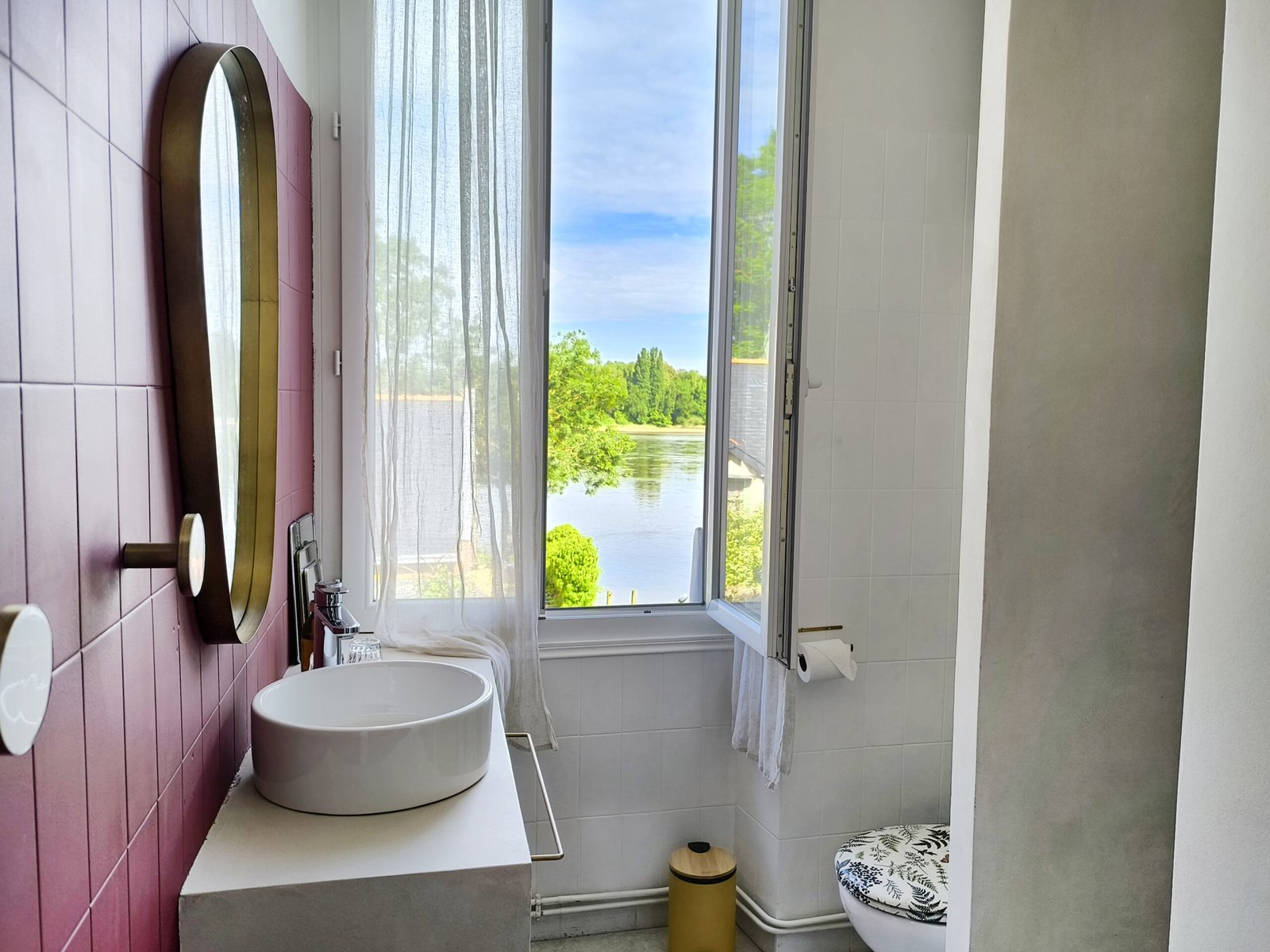 La salle de bain privative avec toilettes, située juste à côté sur le palier, offre elle aussi une vue splendide sur la Loire et les paysages d’Anjou – un vrai moment de déconnexion dès le matin.